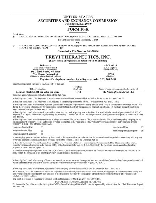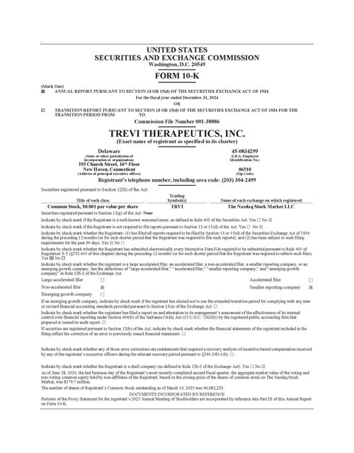 Trevi Therapeutics, Inc. is a clinical-stage biopharmaceutical company developing the investigational therapy Haduvio™ (oral nalbuphine extended-release) for the treatment of chronic cough in patients with idiopathic pulmonary fibrosis (IPF), non-IPF interstitial lung disease (non-IPF ILD), and refractory chronic cough (RCC).